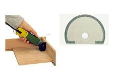 Sanding Accessory for Proxxon Oscillating Delta Sander/Cutter: Diamond Cutting Blade 2 1/2 inch diameter (65 mm), bore 13/32' inch (10 mm). Cuts marble, bricks, dry wall along with many other materials. The semi-circular shape facilitates cutting right into corners or adjoining surfaces without over cutting. Incl. attachment washer.
