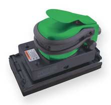 Pneumatic Sander, General Duty, Orbital, 0.3 HP, Pad Size 3 3/8 x 6 3/4 In, Free Speed 8000 RPM, Average CFM @ 15 Second Run Time 5, CFM @ Full Load 11, Required Pressure 90 PSI, Air Inlet NPT 1/4 In, Min Hose Size 3/8 In, Length 7 1/4 In, Rear Exhaust Type, Aluminum Housing, Contoured Lever Throttle